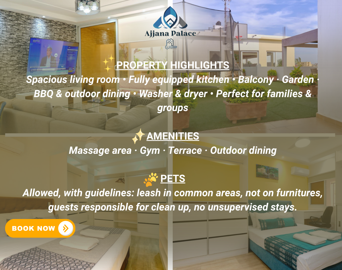 - Animals: Pets that do not cause noise pollution are welcome in the apartment in addition to adhering to the following rules to ensure the cleanliness and tranquility of the premises