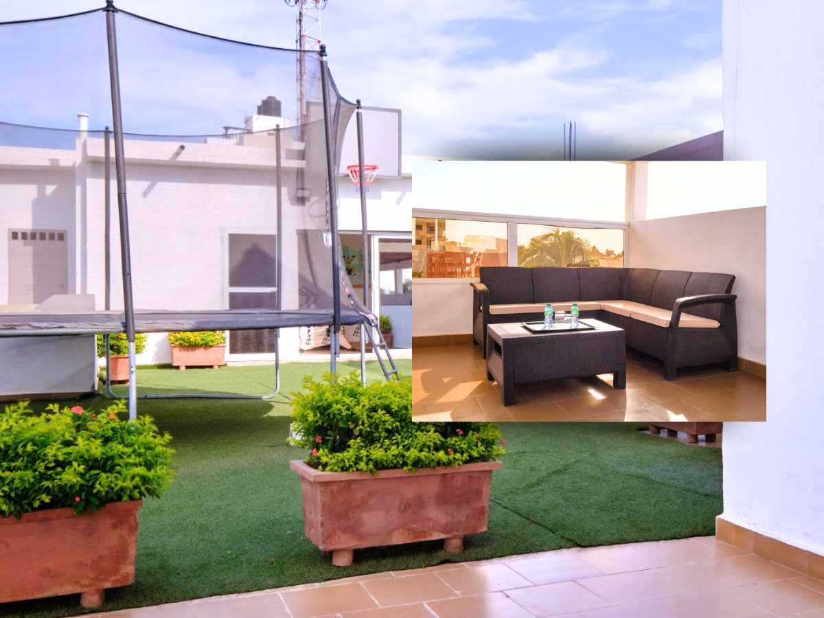 - Child-friendly spaces – designated children’s play area with basketball court, swings, and trampoline