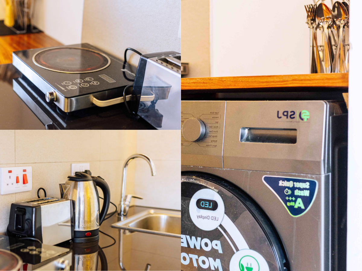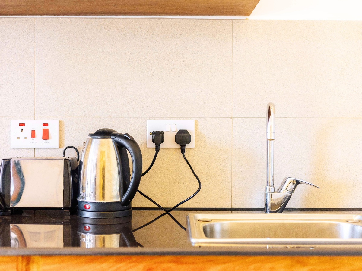 • Appliances: Fridge, Microwave, Kettle, and Toaster.