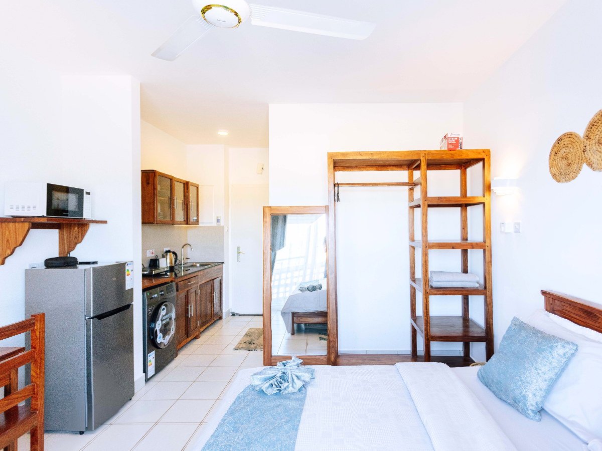 A calm, stylish studio in Fumba Town with waterfront access, ideal for digital nomads and short-term tourism.